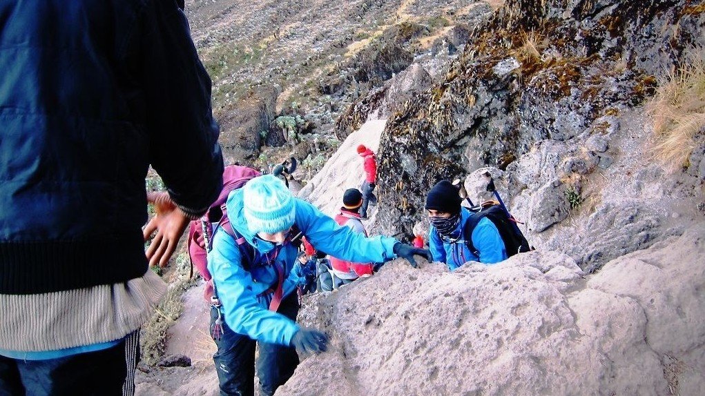 The day begins with traversing up the Barranco Wall: a 257 meter rock face that requires basic scrambling skills to the top of the Karanga Valley. Descend down to the Karanga Camp. After a short break, depart for the Barafu Camp and arrive by late afternoon and rest in your tent.