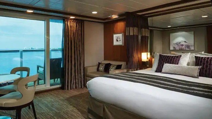 Company policy states that a guest under 18 years of age must be accompanied in the same, connecting or next to a stateroom with an adult guest, who must be 18 years of age or older at the time of embarkation.